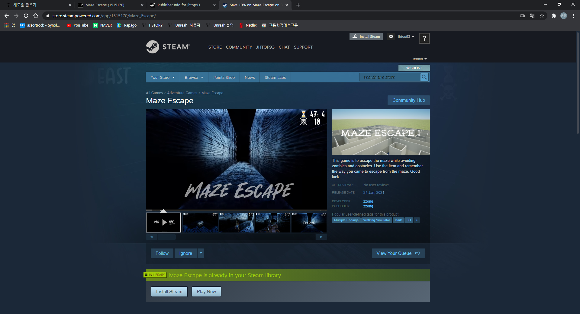 | UE4 게임 개발 EscapeGame - 26 : 스팀 출시 체크리스트 (2) | 2021.01.05 |